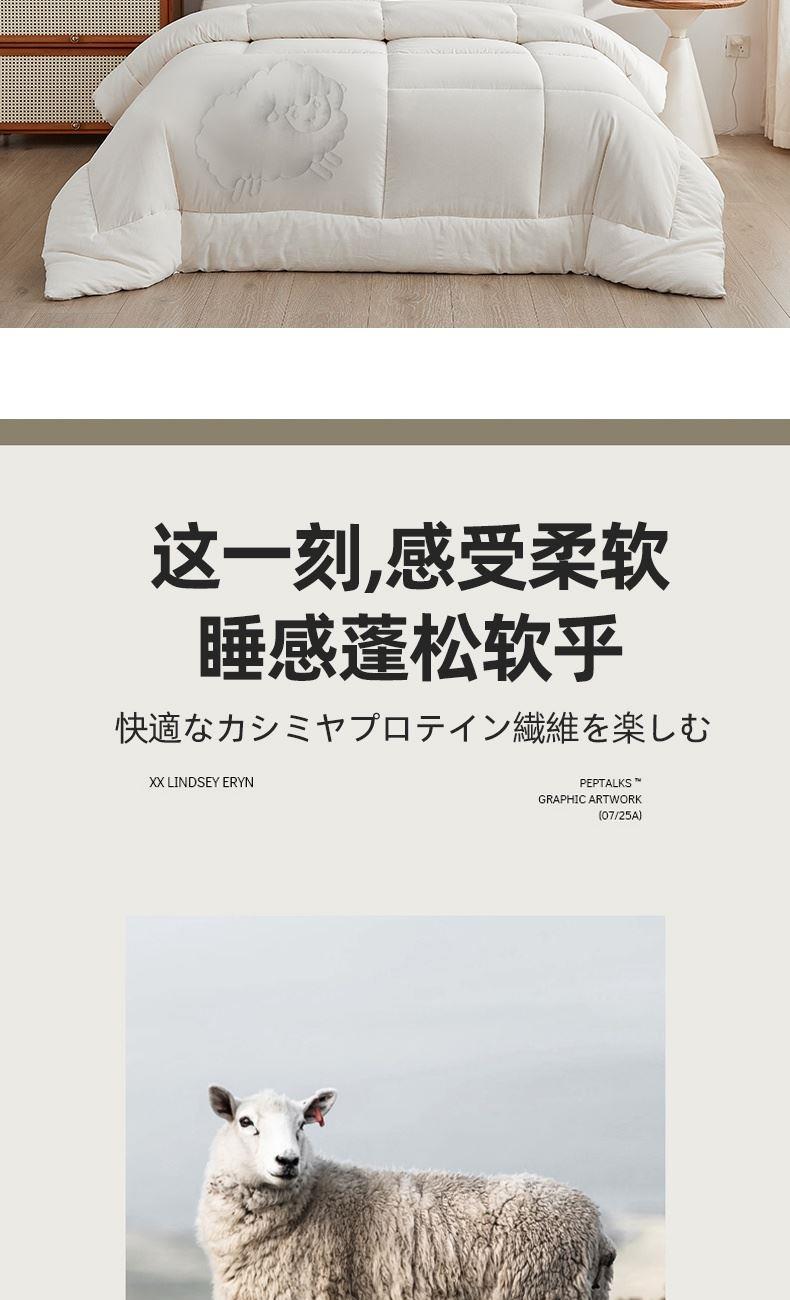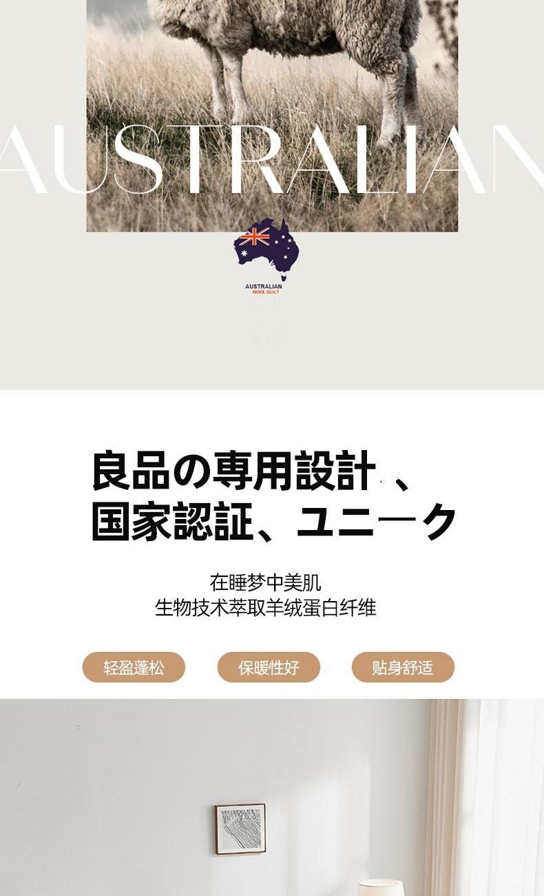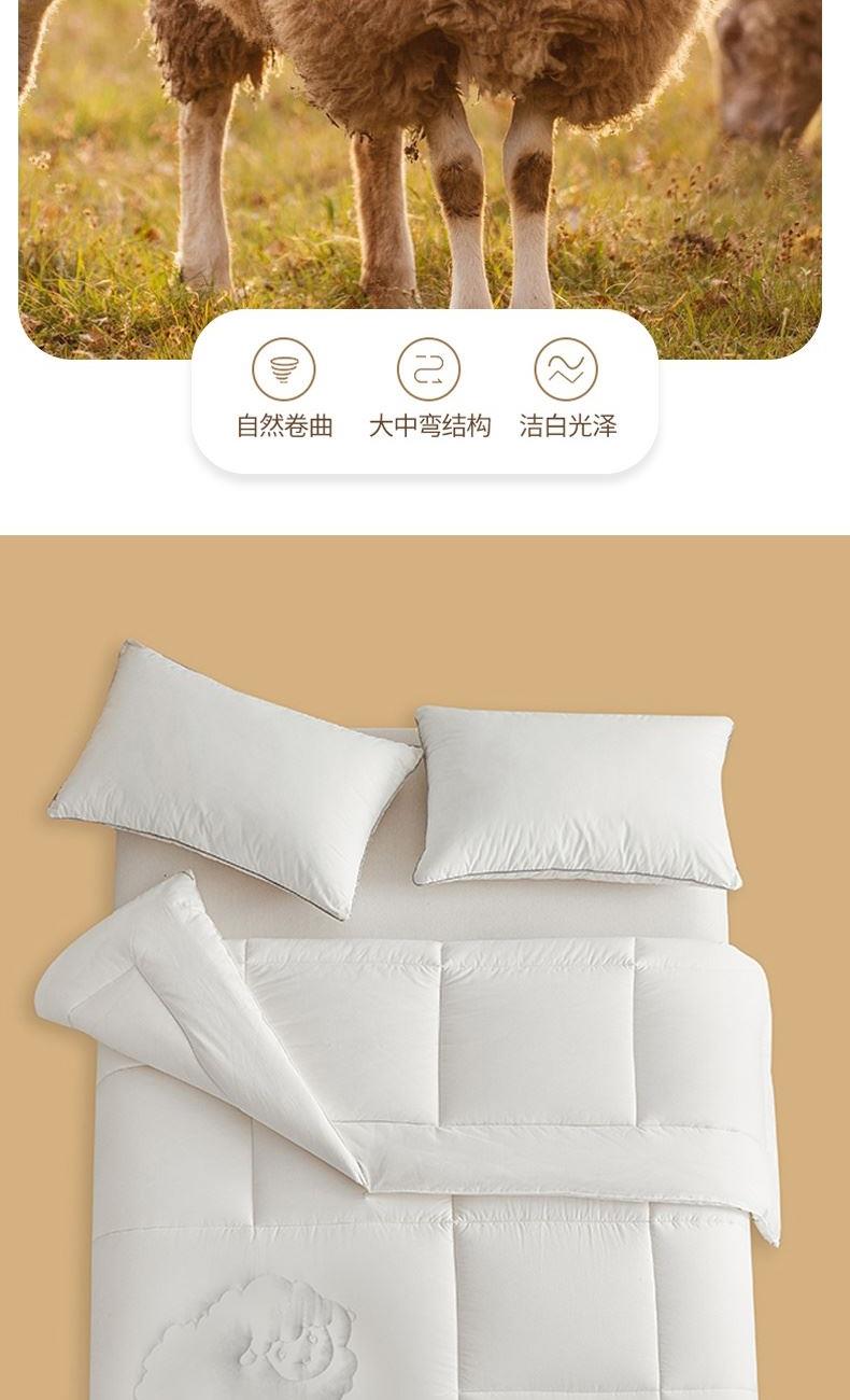 规 格:200×230(±2)cm 克 重:3000g 面 料:高密度防羽布 填 充:羊毛 高密度/防钻毛/抗静电的高密防羽布,对绒类产品的极度亲护. 防螨,除尘,处理过的纯羊毛填充,让冬日更保暖更健康。 高品质、高材质、高标准,一款对生活高度负责的产品