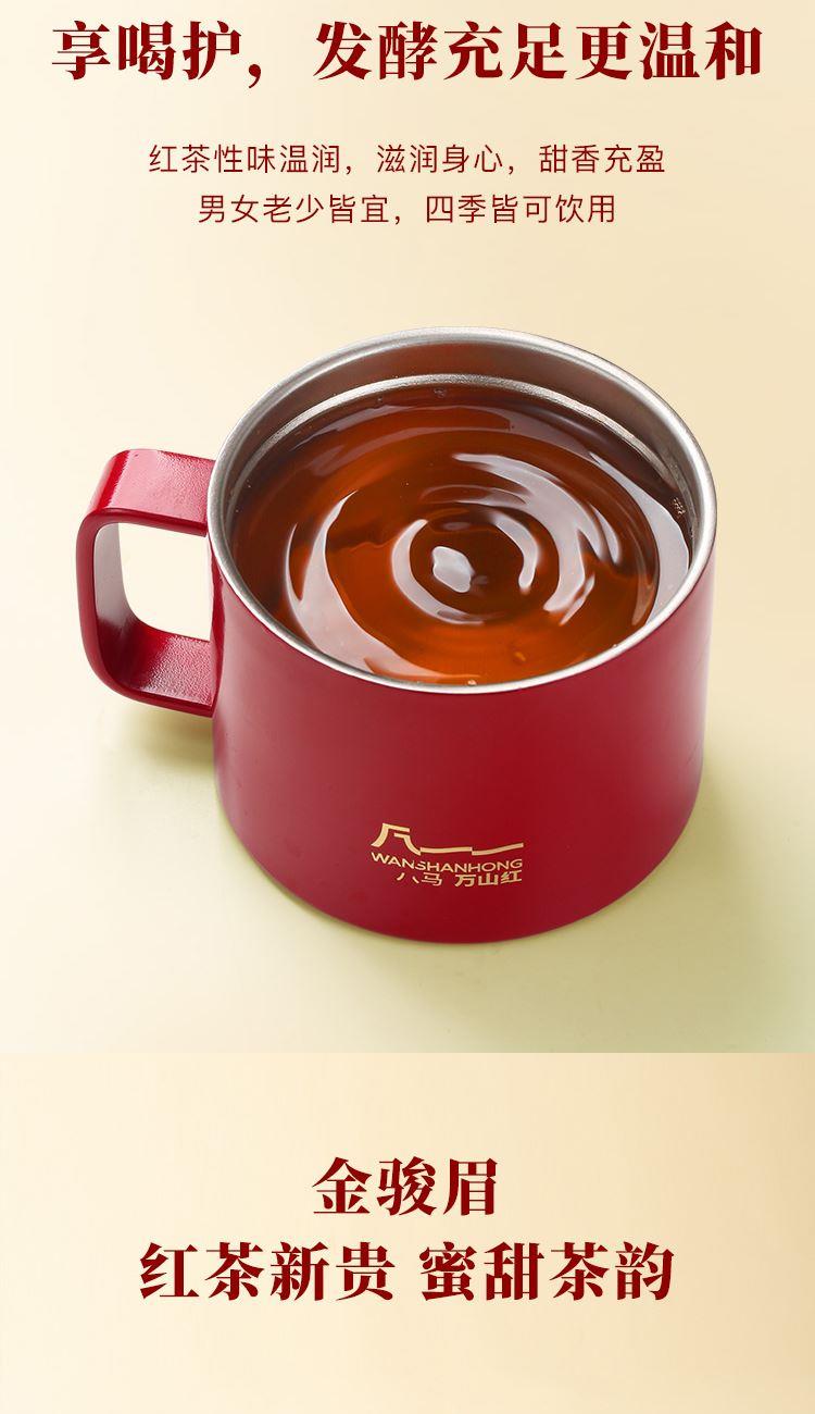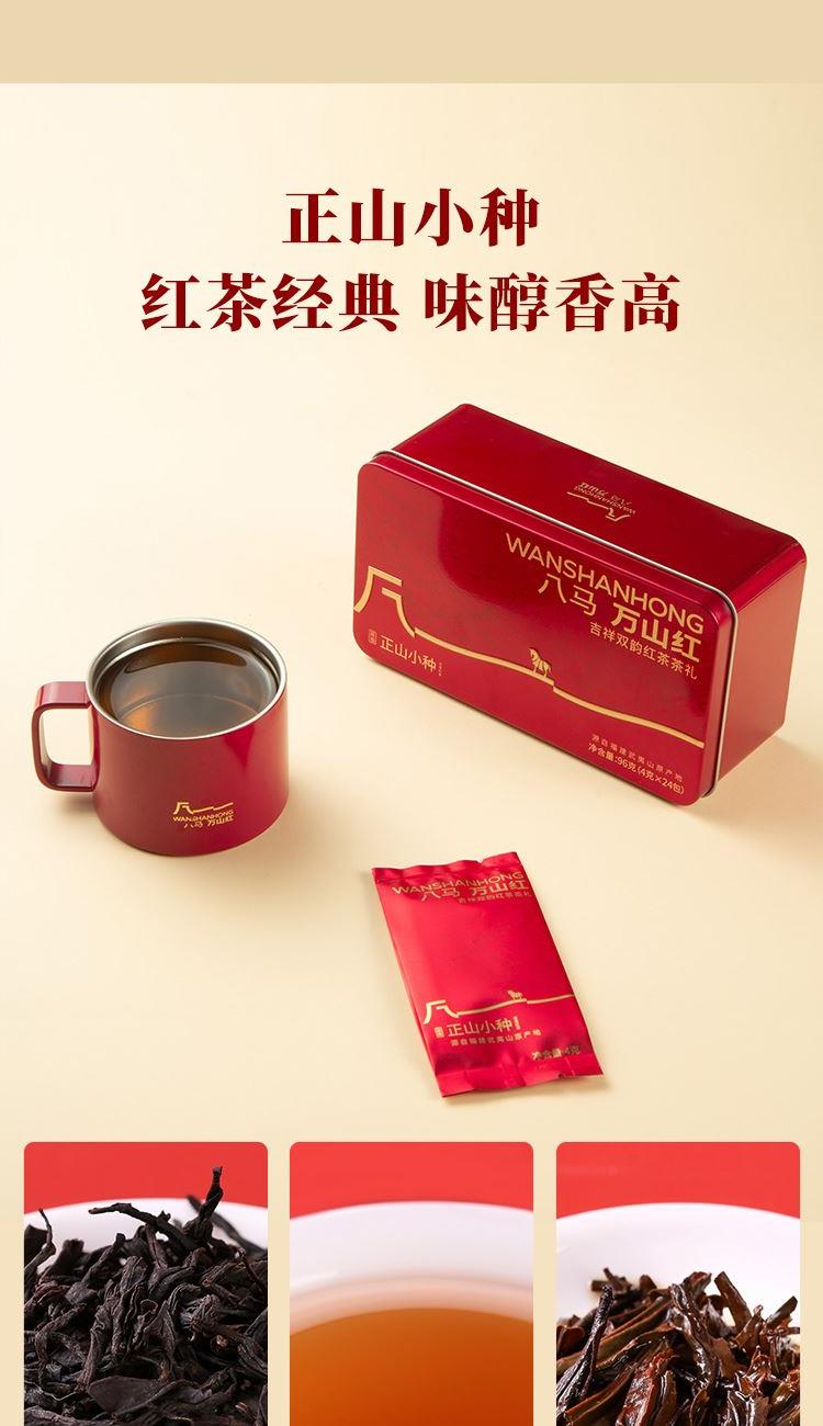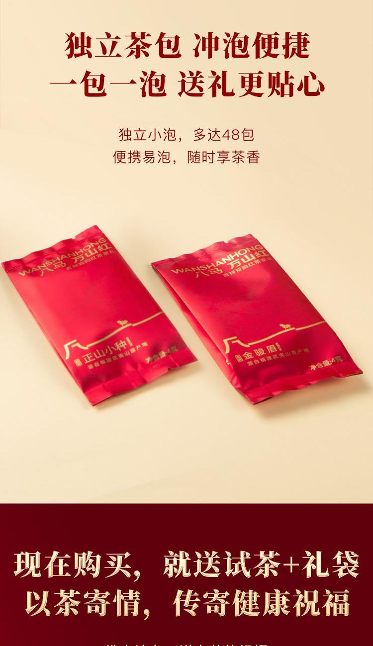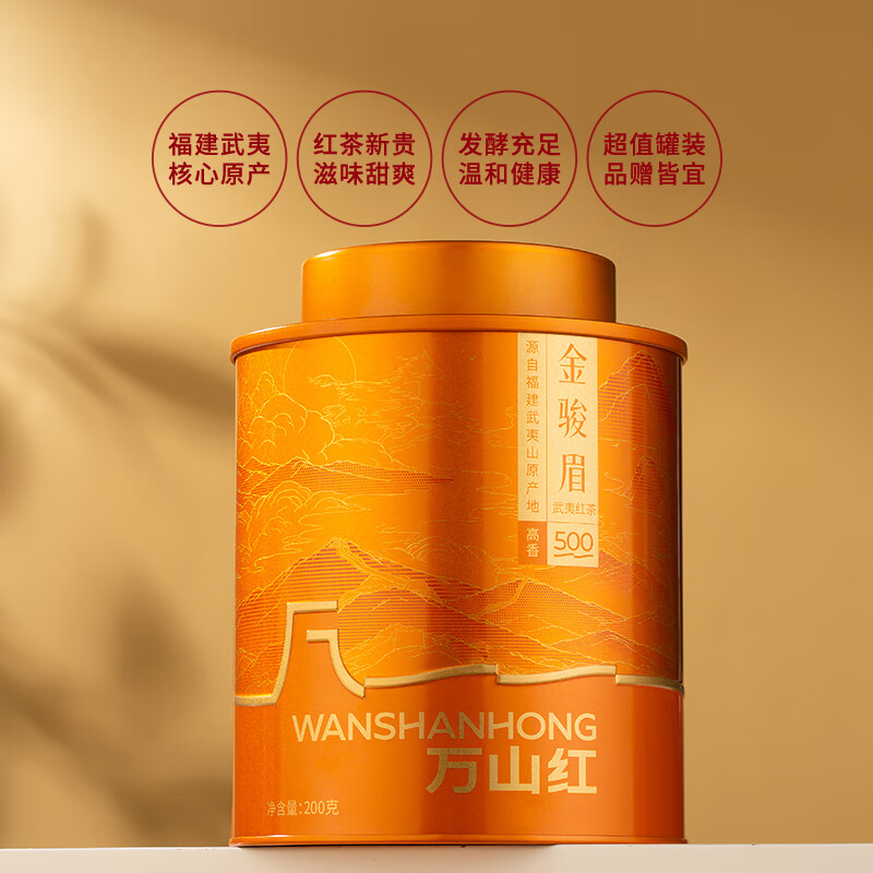 礼盒内配: 特级金骏眉96克(24包) 一级正山小种96克(24包) 净含量:192克 单罐内配: 金骏眉200克 净含量:200g 推荐理由: 自饮一罐,送礼一盒 - 源自福建武夷山原产地,拥有正宗武夷红茶基因,产地优势显著。 - 涵盖金骏眉和正山小种两大经典武夷红茶品类,满足不同红茶爱好者需求。 产品品质与风味 - 金骏眉呈现花果蜜香,滋味醇厚甘甜,香气层次丰富。 - 正山小种则具传统红茶的醇厚口感,香气浓郁持久,口感饱满。 - 包装设计精美,既有单罐(200克装)的精致实用,也有“吉祥双韵红茶茶礼”礼盒装,红金配色尽显大气,适配自饮与送礼场景,下单还赠专属礼袋,提升礼品质感。