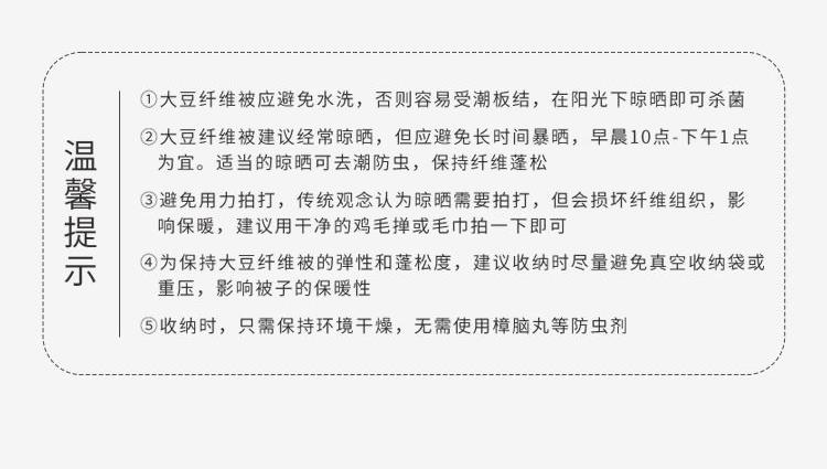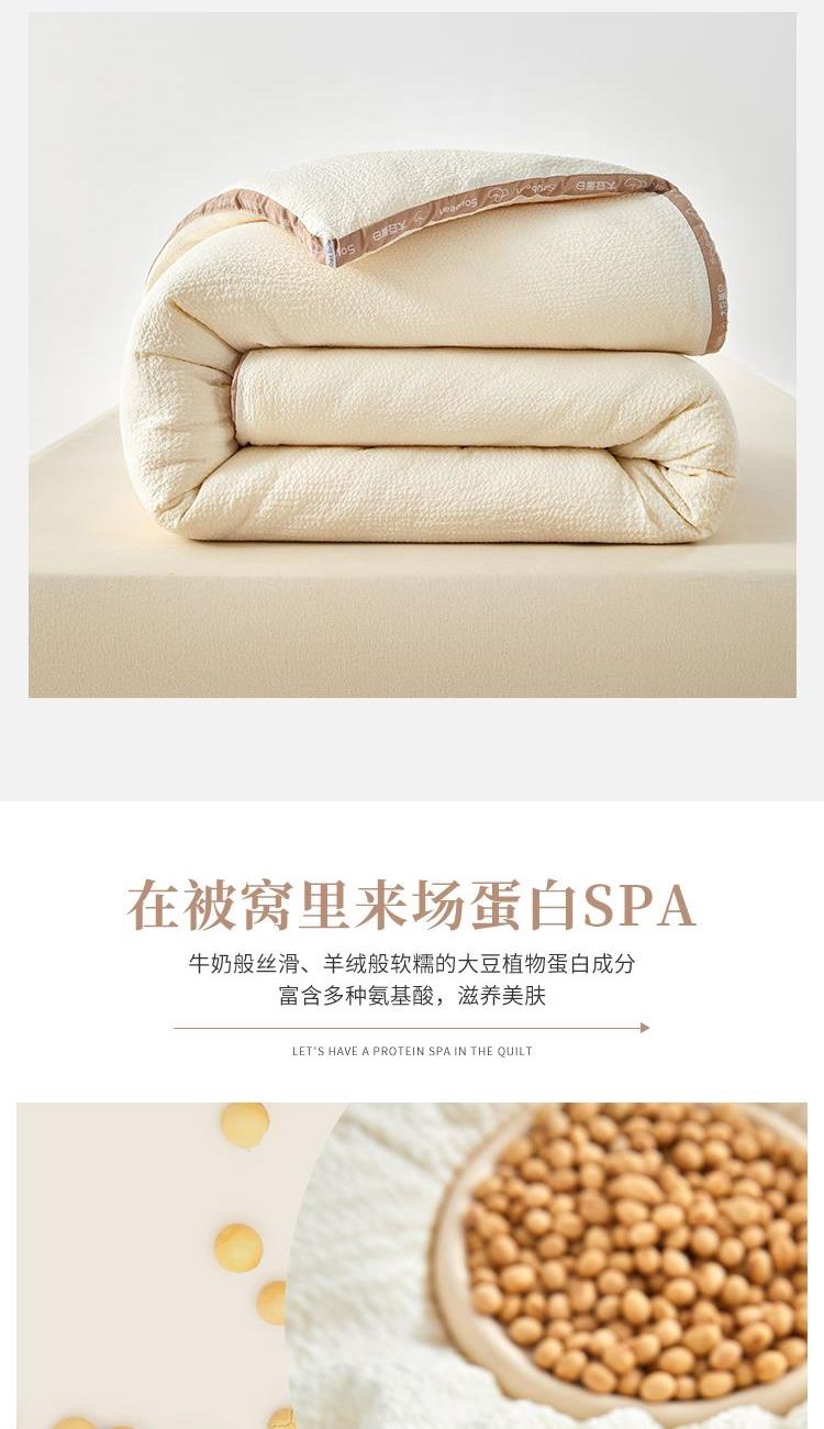 规 格:200×230(±2)cm 克 重:2500g 面 料:立体泡芙棉 填 充:20%大豆纤维+蓬松云朵棉(1500g) 蓬松泡芙般面料,新型织造,亲肤细腻,肌肤感知自然柔软力。 大豆纤维-“软黄金”填充,科学配比,聚暖保温。 高品质、高材质、高标准,一款对生活高度负责的产品