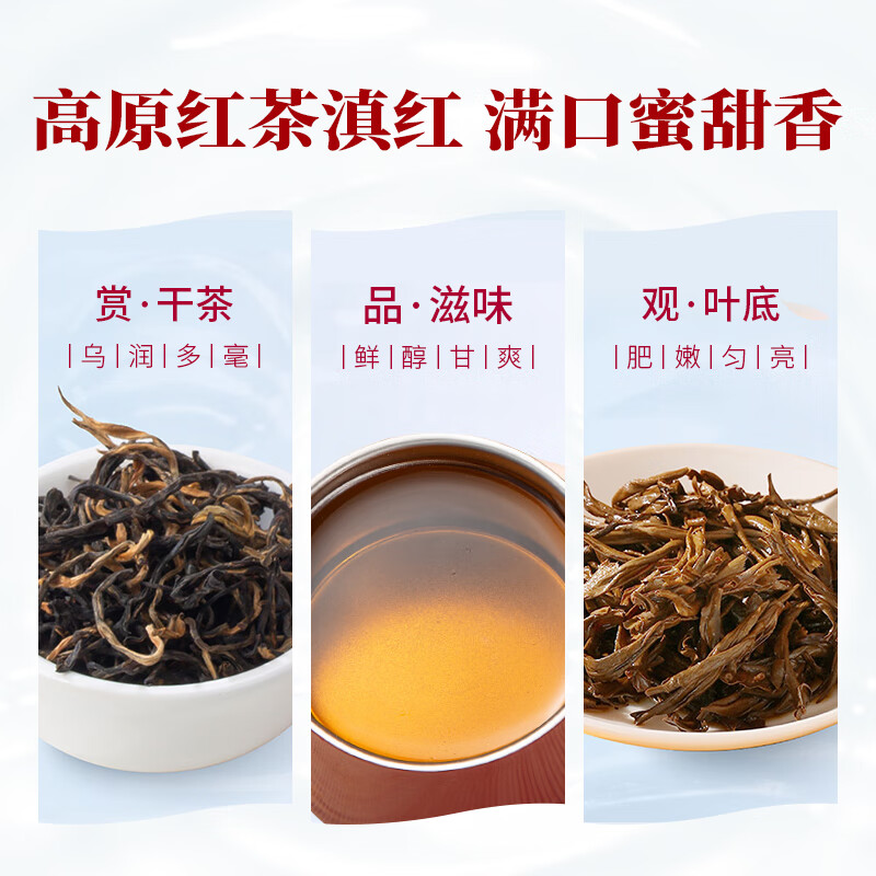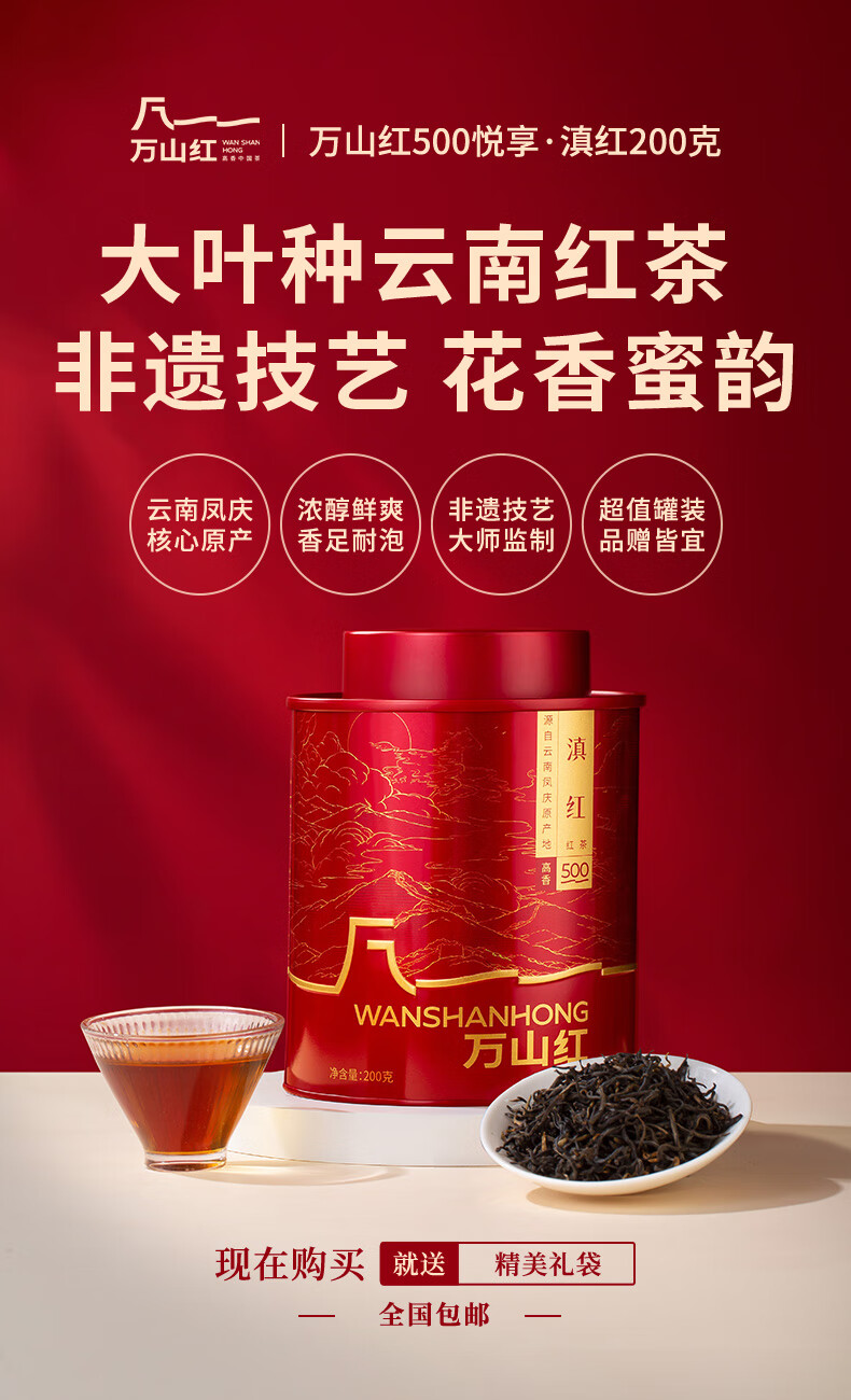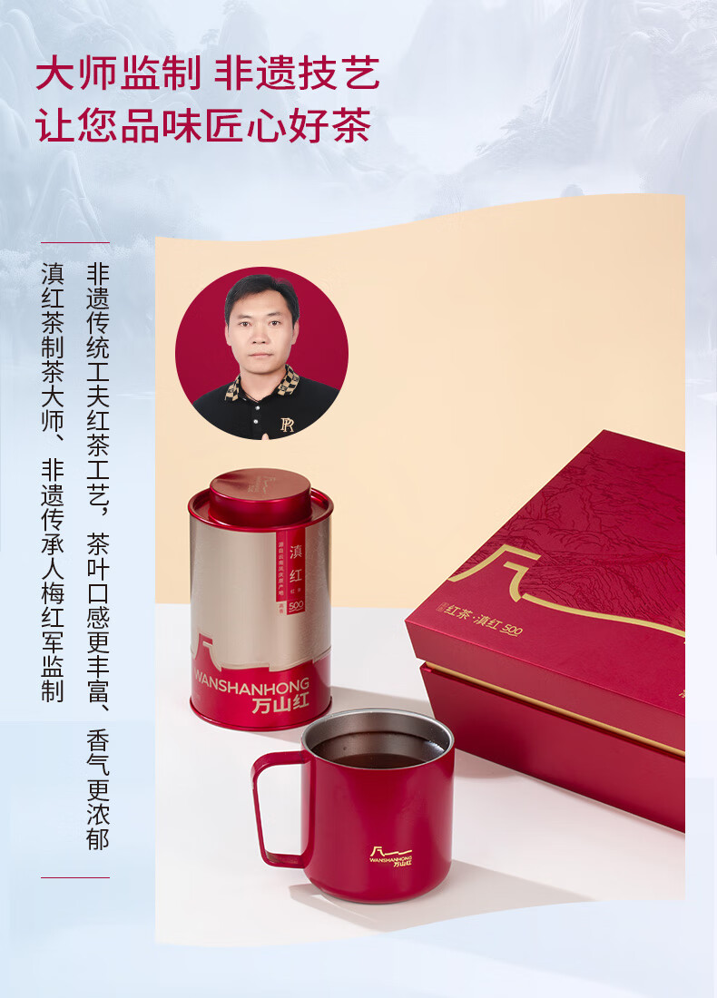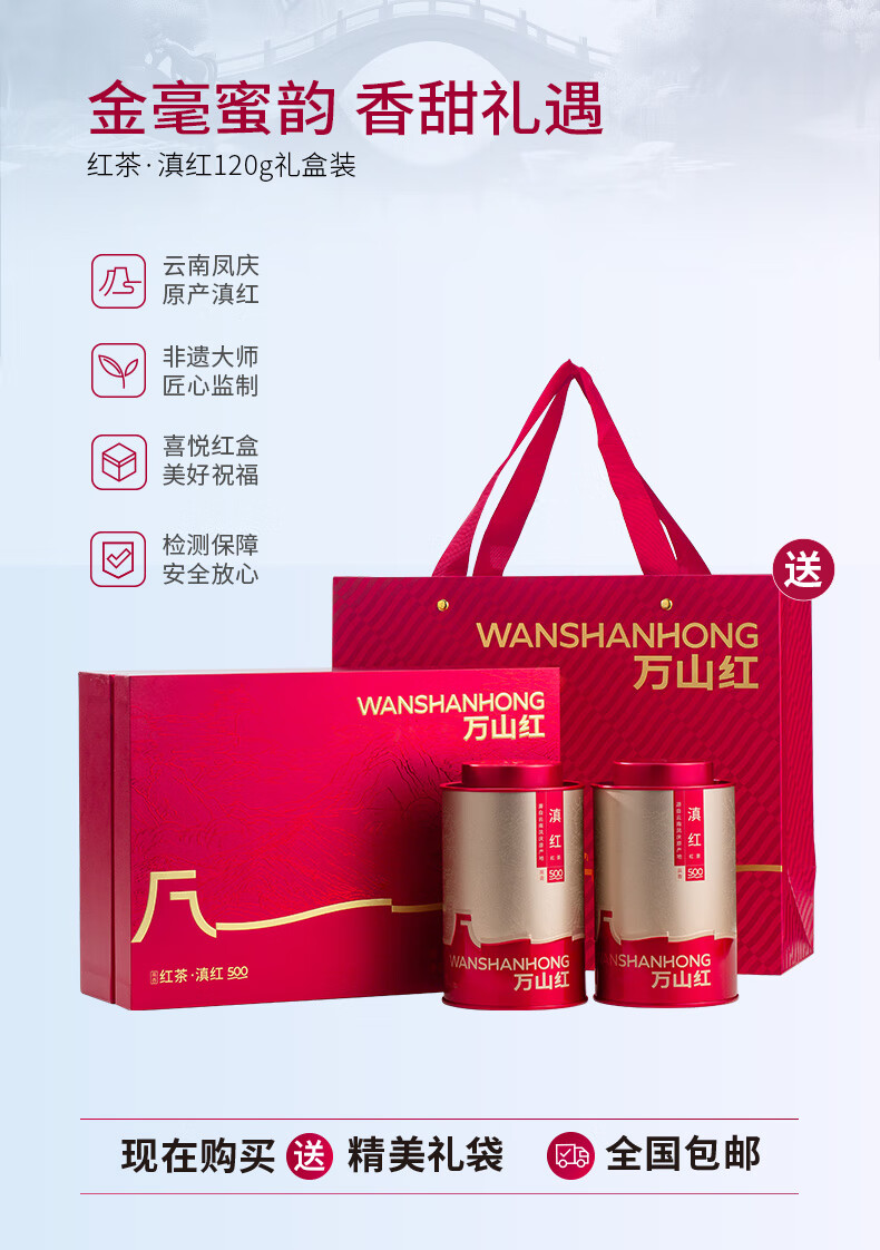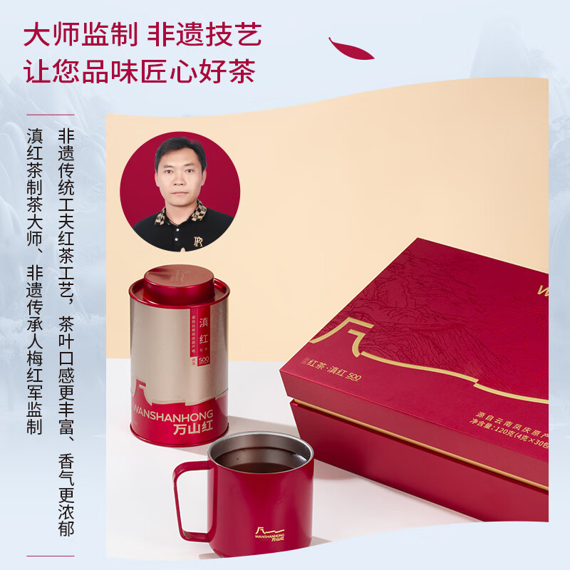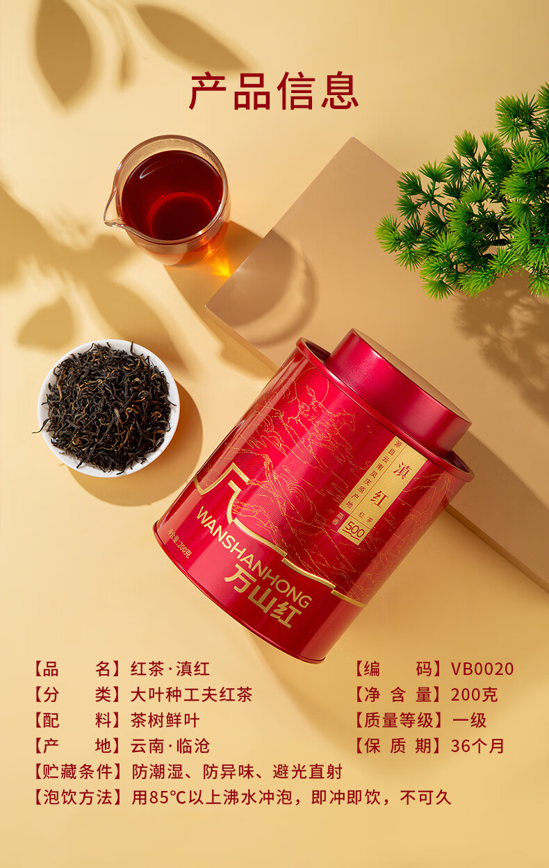 礼盒内配: 滇红红茶60克*2罐 净含量:120克 单罐内配: 滇红200克 净含量:200g 推荐理由: 自饮一罐,送礼一盒; - 源自福建武夷山原产地,拥有正宗武夷红茶基因,产地优势显著。 - 涵盖金骏眉和正山小种两大经典武夷红茶品类,满足不同红茶爱好者需求。 产品品质与风味 - 金骏眉呈现花果蜜香,滋味醇厚甘甜,香气层次丰富。 - 正山小种则具传统红茶的醇厚口感,香气浓郁持久,口感饱满。