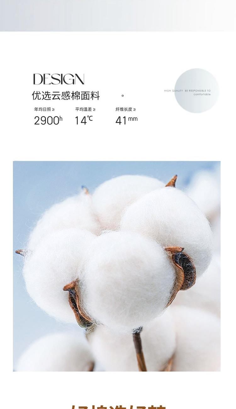 规 格:200×230(±2)cm 克 重:2400g 面 料:云感棉 填 充:棉花&蓬松羽丝1:1(1500g) 云朵般面料,创新织造,亲肤细腻,肌肤感知自然柔软力。 棉花-老百姓喜欢材质,聚暖保温,自然健康。 高品质、高材质、高标准,一款对生活高度负责的产品